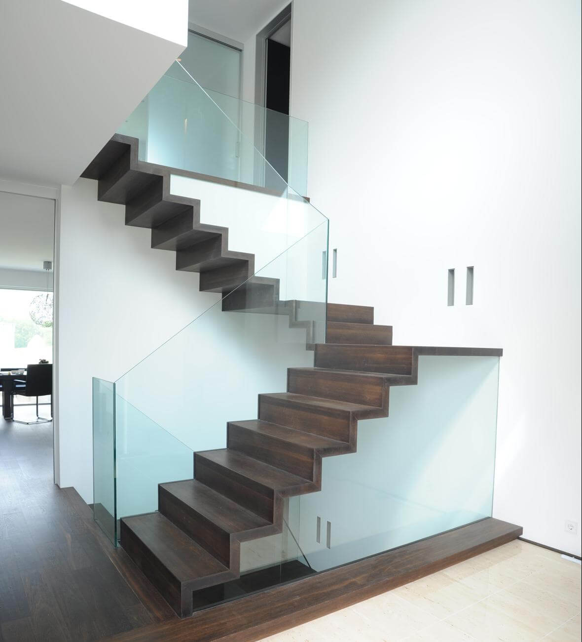Scala a sbalzo con sottogrado e con parapetto in vetro